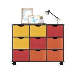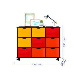 Nicho Organizador Multiuso Quarto Escritório Livros Brinquedos 9 Gavetas 4 Rodízios 1478 - Amarelo
