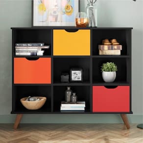 LARGURA PRODUTO COM EMBALAGEM (CM): 36 | COMPRIMENTO PRODUTO COM EMBALAGEM (CM): 111 | PESO PRODUTO COM EMBALAGEM (KG): 33,18 | CONTEÚDO DA EMBALAGEM: 1 Nicho Organizador | MODELO: Nicho Organizador Retrô Yolanda Preto com Gavetas Coloridas | MATERIAL PARA FILTRO: MDP | COR PREDOMINANTE: Preto | PESO DO PRODUTO (KG): 32,38 | INSTRUÇÕES/CUIDADOS: Limpar com pano macio e seco, não utilizar produtos abrasivos. | ALTURA DO PRODUTO (CM): 92 | LARGURA DO PRODUTO (CM): 108 | CORES DO PRODUTO (FILTRO DE CORES): Preto | MATERIAL PRINCIPAL: MDP | COMPRIMENTO DO PRODUTO (CM): 33 | ALTURA DO PRODUTO COM EMBALAGEM (CM): 32 | DESCRIÇÃO DO TAMANHO: Altura: 92,5 cm Largura: 108 cm Profundidade 33,5 cm | PRODUTO PRECISA DE MONTAGEM?: Sim, a montagem é simples mas sugerimos a contratação do nosso de montagem (para os CEPs em que o está disponível) ou de algum experiente de sua preferência | ESTADO DE ORIGEM: PR