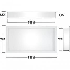Nicho Plástico de Embutir Banheiro Ou Cozinha 30x60x8cm Este NICHO combina funcionalidade robusta com design contemporâneo. Fabricado em material resistente, ele oferece alta durabilidade e capacidade de suportar até 60kg, proporcionando espaço suficiente para suas decorações ou objetos que precisa organizar. É perfeito para compor espaços como cozinhas, salas, escritórios, quartos e áreas de , agregando charme rústico sem abrir mão da praticidade. Se adapta tanto a decorações minimalistas quanto a ambientes mais rústicos, trazendo organização e estilo para qualquer espaço. Fácil de instalar e com design compacto, ele é a solução ideal para quem busca otimizar ambientes. Especificações: Altura Externa: 33cm; Altura Interna: 26cm Largura interna: 56cm; Largura externa: 63cm; Profundidade: 09cm; Peso Máximo Suportado: 60kg; Material: Plástico; Garantia: 12 meses. Sobre nós: Na Ô acreditamos que cada detalhe faz a diferença na criação de ambientes que expressam personalidade e estilo. Fundada com a missão de transformar espaços através de peças decorativas únicas, somos especialistas na fabricação de prateleiras, suportes e outros itens que aliam funcionalidade, qualidade e design. Com inspiração no estilo industrial e contemporâneo, nossas criações são feitas para agregar beleza e praticidade a qualquer ambiente, seja na sua casa, escritório ou comércio. Cada peça é produzida com materiais de alta qualidade, garantindo resistência e durabilidade, sempre com um toque de sofisticação. Caso tenha dúvidas ou precise de ajuda para escolher seu produto, não hesite em entrar em conosco!