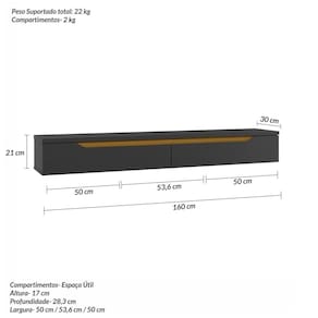 O Nicho Suspenso Uno é um produto com um design diferenciado, possui duas portas basculantes usinadas para servir de puxadores e uma vista amadeirada. Sua estrutura é em MDF e MDP de 15 mm, possui três compartimentos internos. É um produto que você poderá instalar na parede de qualquer ambiente, no estilo contemporâneo, personalizando e deixando-o exclusivo Acabamento: Acetinado Ambiente Principal: Sala de Estar Complexidade da Montagem: Alta: deve ser montado por um montador especializado Cor: Preto/ Cedro Cor do Produto: Preto/ Cedro Escala de Brilho: Semi-Brilho Itens Inclusos: 1 Nicho, Manual de Montagem, Kit de Montagem Manual de Montagem e Instalação: https://product-hub-prd.madeiramadeira.com.br/904803/documents/42e0b30e-4958-4094-b8d2-ee720fc8c97941manualexpnichosupensouno.pdf Material da Porta: MDF Material Principal: MDF/MDP Necessita Montagem: Sim Origem do Produto: Nacional Peso: 17 kg Possui Espelho: Não Possui Possui Fundo: Não Possui Portas: 02 Possui Prateleiras: Não Possui Toalheiro: Não Recomendações de Uso, Manutenção e Limpeza: Pano úmido. Não aplicar lustra móveis Sistema de Montagem: PARAFUSOS, MINIFIX Suporta Até (kg): 22 kg Tipo de Nicho: Prateleira Tipo de Porta: Basculante Tipo de Puxador da Porta: Embutido