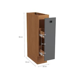 Transforme sua cozinha e a deixe mais completa com a beleza e praticidade do Nicho Porta Condimentos 20cm R660 da Cozinha Pixel da Kappesberg. Produzido em chapa MDP de 15mm, garante robustez, firmeza e qualidade, além de um acabamento lindo. Com até sete camadas de pintura, a caixaria possui acabamento touch na cor canela, com a textura dos veios da madeira, enquanto a porta, em MDP e acabamento BP, é mais resistente contra riscos, arranhões e gotas d'água, e na cor cinza sagrado, possui acabamento fosco. Uma combinação elegante e moderna, que dará ainda mais destaque ao seu espaço, deixando sua cozinha perfeita. Fechando ótimas combinações com o aéreo do mesmo tamanho, o nicho pode ser montado com tampo ou pedra, e para um melhor acabamento, ele conta com rodapé, mas acompanha as ferragens para ser montado suspenso, e se você preferir, também pode adquirir os pés separadamente, garantindo muita praticidade. Com medidas de 88cm de altura, 20cm de largura e 52cm de profundidade, o nicho conta com uma porta corrediça e duas prateleiras, ideais para a organização de temperos e outros condimentos, facilitando o acesso e o preparo de suas receitas. O diferencial fica para as corrediças telescópicas, que permitem a abertura total e um melhor aproveitamento de espaço, além de maior resistência a peso. Já o puxador, metálico na cor preta, conta com detalhes em alto-relevo que completam o estilo e a qualidade do produto, garantindo um diferencial único para sua cozinha. Renove seu espaço e o deixe ainda mais completo com a Cozinha Pixel da Kappesberg.