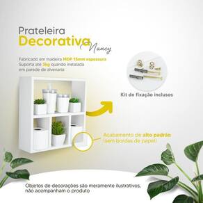 Obs.: Todos os itens de decoração das fotos não acompanham o produto. RBN: Casa/Decoração para Casa/Acessórios Decorativos/Prateleiras | Produto: Nicho | Material: Madeira | Cor: Branco | Tonalidade: Branco | Estado de Origem: PR | Conteúdo da Embalagem: 01 Nicho | Garantia: 3 meses contra defeitos de fabricação. | Instruções/Cuidados: Recomenda-se a limpeza com pano úmido. Não utilizar produtos abrasivos ou químicos. | Fabricante: Mercado das Prateleiras | Produto precisa de Montagem?: Sim, a montagem é simples mas sugerimos a contratação do nosso serviço de montagem (para os CEPs em que o serviço está disponível) ou de algum profissional experiente de sua preferência | Altura: 40 | Largura: 40 | Comprimento: 12 | Peso do produto: 3 | Altura do Produto com Embalagem: 40cm | Largura do Produto com Embalagem: 40cm | Comprimento Produto com Embalagem: 12cm | Peso do Produto com Embalagem: 3 | Descrição do Tamanho: Largura: 40cm x Comprimento: 12cm x Altura: 40cm | Acabamento: Fosco | Espessura: 15mm | Requere Montagem: Sim | Tipo de Prateleira: Cubo | Inclui Kit de Instalação: Sim | Precisa de baterias ou pilhas: Não | Regulamentações aplicáveis a produtos perigosos: Não se aplica | Código de certificação: Não se aplica