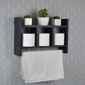 Nicho Porta Toalha Preto para Banheiro 45 x 30cm é a escolha perfeita para quem busca criatividade e organização de espaço no banheiro.