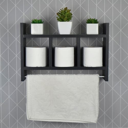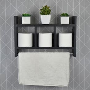 Nicho Porta Toalha Preto para Banheiro 45 x 30cm é a escolha perfeita para quem busca criatividade e organização de espaço no banheiro.
