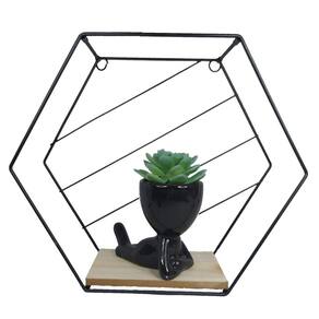 Nicho Prateleira Hexágonal Aramada Em Madeira Preto - Diagonal Produzido em metal e madeira com design moderno e de fácil instalação, serve para organização de livros, vasinhos e pequenos objetos decorativos, otimizando o espaço das paredes. Linda peça de decoração e funcional, pode ser usada no cantinho do café para organizar as xícaras, no banheiro e lavabo para organizar toalhas de mão e papel higiênico, num cantinho especial para livros e plantinhas, enfim para dar um toque moderno e despojado a sua decoração.