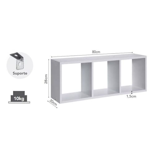 Nicho Prateleira Triplo Decorativo Colors Retangular Branco