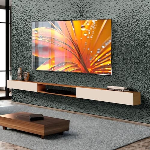 Transforme sua sala com este rack suspenso elegante e prático, perfeito para quem busca organização, estilo e aproveitamento de espaço.