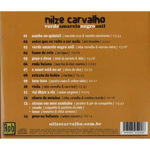 Nilze Carvalho lança seu terceiro disco solo Verde Amarelo Negro Anil, o sucessor de O que é Meu, que mereceu críticas elogiosas. O álbum conta com duas músicas inéditas e três composições da sambista. Fundadora do Sururu na Roda, grupo há 15 anos na estrada, Nilze imprimiu neste trabalho sua visão pessoal em cada uma das canções pois, além de interpretá-las também ficou à frente da escolha do repertório e arranjos. O álbum traz releituras de sambas clássicos e também resgata canções que não tiveram o merecido destaque. Ao longo dos mais de 30 anos de carreira Nilze, que começou gravando ao bandolim, dos 11 aos 14 anos a série de LPs Choro de criança, acumula a experiência de tocar e cantar vários estilos musicais, tendo lançado só com o Sururu na Roda 4 CDs e um DVD e gravado com vários artistas importantes. Neste CD, ela traz como foco central o samba, com algumas de suas vertentes, e muita mistura de ritmos. Mestre Monarco participa de uma faixa do CD: o pout-pourri Atraso em meu Caminho Picolino/Jair do Cavaquinho / Recado Casquinha/Paulinho da Viola / Lenço Monarco/Chico Santana . Marceu Vieira, jornalista, é autor em parceria com Nilze da faixa título Verde amarelo negro anil.