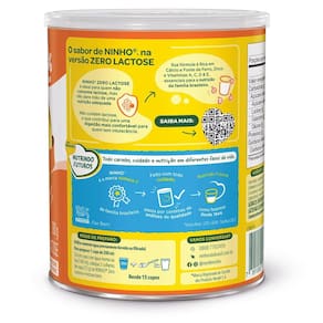 NINHO Composto Lácteo Zero Lactose Lata NINHO® Zero Lactose é ideal para quem não consome lactose, mas não abre mão de uma nutrição adequada. Não contém lactose, o que contribui para uma digestão ma