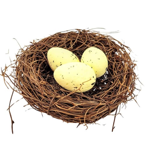 Ninho Decorativo Com 3 Ovos 12cm Decoração De Páscoa Amarelo Charme Rústico: Ninho Decorativo com Ovos de Páscoa