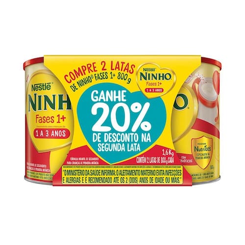 Ninho Fases 1+ Fórmula Infantil 2 Latas 800g cada + 20% Desconto na Segunda Lata