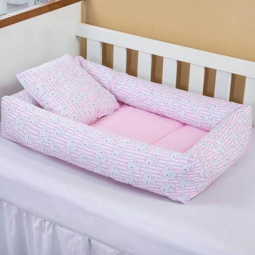 Proporcione ao seu bebê todo o conforto e segurança que ele merece com este lindo ninho de berço Feito com tecido macio e respirável, ele envolve o bebê de forma aconchegante, ajudando na adaptação fora do colo da mamãe e proporcionando um sono mais tranquilo. Acompanha almofada para apoiar a cabecinha do bebê Ideal para berço, cama compartilhada, sofá ou para levar em viagens Cria um espaço seguro, reduzindo o risco de movimentos bruscos durante o soninho Fácil de transportar e higienizar Perfeito para recém-nascidos até os primeiros meses de vida, o ninho é o aliado das mamães que desejam praticidade e aconchego no dia a dia. Tamanho 01 Ninho: 65cm x 45cm 01 Almofada tamanho irregular Possui zíper para retirar o enchimento e facilitar a lavagem. Composição Micro percal 100% poliéster