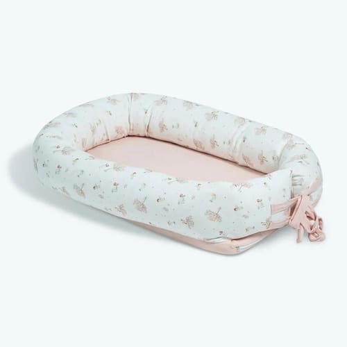 Devido as almofadas que formam uma barreira em volta do corpinho, seu bebê fica seguro, tem um sono super tranquilo e não corre riscos de bater nas laterais do berço e rolar da cama. Sempre nesse formato, super macio e confortável, os ninhos são produzidos em tecido suedine 100% algodão. Assim, evita o surgimento de possíveis alergias na pele do bebê, bordado exclusivo HUG, centro sem enchimento para não deformar a moleira do bebê, suedine com nanotecnologia que agrega maciez e tratamento antibacteriano e antifúngico. Forro lateral em TNT, enchimento do rolo lateral em fibra.