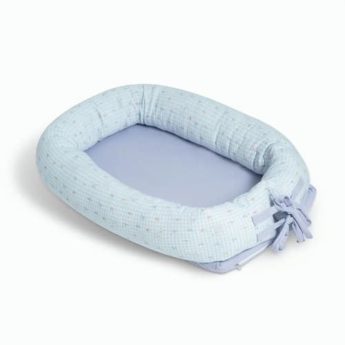Devido as almofadas que formam uma barreira em volta do corpinho, seu bebê fica seguro, tem um sono super tranquilo e não corre riscos de bater nas laterais do berço e rolar da cama. Sempre nesse formato, super macio e confortável, os ninhos são produzidos em tecido suedine 100% algodão. Assim, evita o surgimento de possíveis alergias na pele do bebê, bordado exclusivo HUG, centro sem enchimento para não deformar a moleira do bebê, suedine com nanotecnologia que agrega maciez e tratamento antibacteriano e antifúngico. Forro lateral em TNT, enchimento do rolo lateral em fibra.