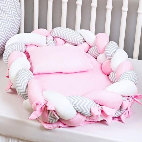 Ninho redutor berço trançado menina rosa 4 peças com trança e travesseiroO ninho redutor de berço proporciona todo conforto e segurança que seu bebê necessita nos primeiros meses de vida. O ninho pode ser utilizado sobre o colchão do berço ou da cama. O mais interessante é que o ninho redutor simula o útero materno, proporcionando o aconchego que seu bebê merece.Este ninho redutor possui a trança removível podendo utilizá-la como protetor lateral também.Contém 4 peças:Ninho redutor montado: 70cmx55cmx15cmNinho redutor aberto:1 trança: 1,80mx 12cm (pode ser utilizada como protetor lateral)1colchonete: 70cmx55cmx 3cm1 fronha: 30cmx25cm1 travesseiro: 30cm x 25cmComposição: Tecido estampado: 100% algodãoTecido liso: 100% poliésterEnchimento: 100% poliésterObservação:Não possui saída para enchimento. Deve ser lavado a mão. Marca: L2m