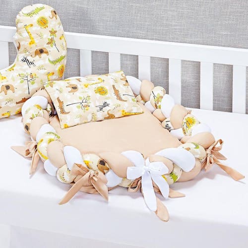 O ninho redutor de berço proporciona todo conforto e segurança que seu bebê necessita nos primeiros meses de vida. O ninho pode ser utilizado sobre o colchão do berço ou da cama. O mais interessante é que o ninho redutor simula o útero materno, proporcionando o aconchego que seu bebê merece.Este ninho redutor possui a trança removível podendo utilizá-la como protetor lateral também.Contém 4 peças:Ninho Redutor montado: 70cmx55cmx15cmNinho redutor aberto:1 Trança: 1,80mx 12cm pode ser utilizada como protetor lateral 1colchonete 70cmx55cmx 3cm1 fronha- 30cmx25cm1 TRAVESSEIRO - 30CM X 25CMComposição: Tecido estampado: 100% algodãoTecido Liso: 100% poliésterEnchimento: 100% poliésterObservação:Não possui saída para enchimento. Deve ser lavado a mão. Marca: L2m