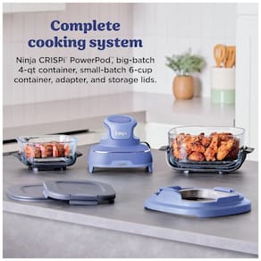 O Ninja Crispi Sistema de Cocção Portátil é uma potência compacta que combina os 1500W de um air fryer de tamanho normal em um design portátil. Inclui um recipiente CleanCrisp pequeno de 6 copos e um maior de 3,78 litros. Seja preparando refeições individuais rápidas em 7 minutos, compartilhando lanches crocantes em movimento ou servindo a uma multidão, o Ninja Crispi facilita tudo. Com vidro borossilicato, é possível ir direto do congelado para o crocante em minutos. A limpeza é simples, todos os acessórios podem ir à lava-louças e são projetados para se encaixarem facilmente para armazenamento. Baseado na potência comparada ao Ninja AF100 ALL-IN-ONE SYSTEM. Inclui o Ninja Crispi PowerPod, recipientes CleanCrisp de 3,78 litros e 6 copos, um adaptador de recipiente, 2 tampas de armazenamento e 2 placas crocantes.