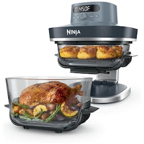 Oferece 6 funções programáveis: Max Crisp, Air Fry, Bake/Proof, Roast, Recrisp e Dehydrate, com controle preciso de temperatura até 232°C via botões push-button. O vidro CleanCrisp é compatível com micro-ondas, freezer e lava-louças, garantindo durabilidade e facilidade de limpeza. Ideal para refeições diárias ou em família, acomoda preparos equivalentes a um frango de 3,4 kg, com desligamento automático para segurança operacional.