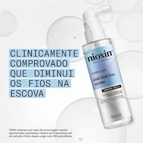 O Nioxin Anti-Hair Loss Sérum conta com uma fórmula exclusiva que não apenas reduz a queda de cabelo, mas também promove o engrossamento dos fios.