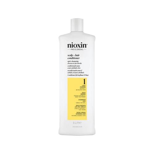 Nioxin System 1 - Condicionador Contra Afinamento Capilar 1L Revitalização e Fortalecimento: Este condicionador foi especialmente formulado para revitalizar e fortalecer os cabelos finos, deixando-os com uma aparência mais volumosa e saudável. Sua fórmula única nutre profundamente os fios, restaurando sua saúde e beleza natural. Benefícios Inigualáveis:
