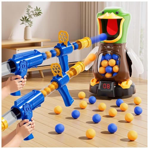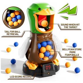 Descubra o divertido e interativo Jogo de Tiro ao Pato da NIPLOOOW, ideal para crianças entre 3 e 12 anos! Este conjunto completo inclui 1 alvo de pato móvel, 2 lançadores tipo popper, 2 óculos de proteção e 48 bolinhas de espuma EVA, proporcionando segurança e diversão tanto para ambientes internos quanto externos. Com modos de tiro estático e móvel, cada um oferecendo diferentes níveis de dificuldade, as crianças podem aprimorar sua coordenação motora, tempo de reação e habilidades de mira enquanto se divertem. O jogo ainda possui um placar digital com display LCD que registra os pontos, emitindo sons a cada acerto no alvo, garantindo uma experiência realista e competitiva para até vários jogadores. As bolinhas de espuma são leves, seguras e podem ser facilmente coletadas de dentro do 'ventre' do pato para reutilização contínua. Fabricado com material ABS liso e resistente, sem rebarbas, este brinquedo é seguro e durável. Presente perfeito para aniversários, Páscoa, Natal, Halloween e outras ocasiões especiais, promovendo atividades ao ar livre e diversão em família ou com amigos.