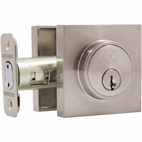 Enfeite sua porta da frente com a fechadura quadrada contemporânea. Seu perfil baixo é ideal para casas contemporâneas e de meados do século.