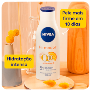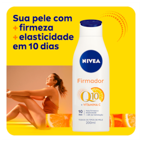Hidratante desodorante para todos os tipos de pele. NIVEA Firmador Q10 + Vitamina C previne a flacidez, traz firmeza e aumenta a elasticidade do corpo.