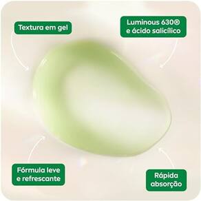 Aqua (Água), Alcohol Denat. (Álcool Desnaturado), Glycerin (Glicerol), Tapioca Starch (Amido), Salicylic Acid (Ácido Salicílico), Carbomer (Carbômer), Isobutylamido Thiazolyl Resorcinol (Isobutilamido Tiazolil Resorcina), SodiumHyaluronate (Hialuronato de Sódio), Camellia Sinensis Leaf Extract (Extrato da Folha de Camellia Sinensis), Panthenol (Pantenol), Pantolactone (Pantolactona), Isoquercitrin (Isoquercitrina), Glucosylrutin (Glicosilrutina), Glycyrrhiza Inflata Root Extract (Extrato da Raiz de Glycyrrhiza Inflata), Ammonium Acryloyldimethyltaurate/VP Copolymer (Copolímero de Acriloildimetiltaurato de Amônio/Vinilpirrolidona), Decylene Glycol (Decilenoglicol), Citric Acid (Ácido Cítrico), TrisodiumEDTA (Edetato Trissódico), Sodium Chloride (Cloreto de Sódio), Sodium Sulfate (Sulfato de Sódio), Sodium Hydroxide (Hidróxido de Sódio), SodiumBenzoate (Benzoato de Sódio), Parfum(Perfume), CI 42090 (Azul Brilhante), CI 16035 (Vermelho Allura 129).