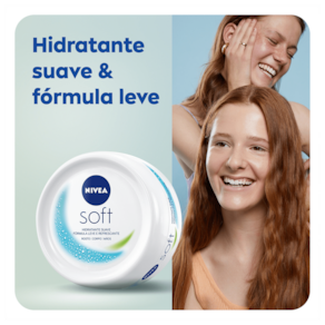 Creme hidratante para corpo, mãos e rosto, ideal para todos os tipos de pele. NIVEA Soft suaviza a textura da pele, sensação de maciez prolongada e frescor.