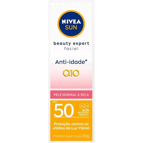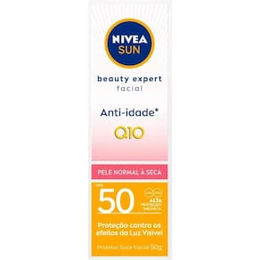 Nivea Sun Beauty Expert Facial Pele Normal a Seca foi desenvolvido especialmente para as necessidades específicas do rosto. Possui FPS 50 e Q10 em uma fórmula hidratante com toque de seda. É Também comprovada oftalmologicamente, ideal para uma utilização diária.Indicado:Pele Normal a Seca Marca: NIVEA INDUSTRIA