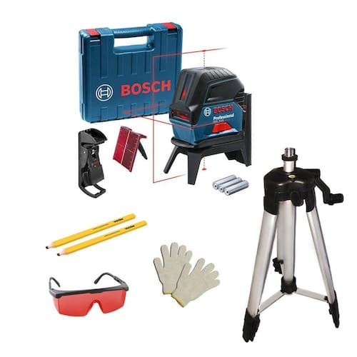 Nível a laser bosch gcl 2-15 - 15 metros, com tripé, óculos vermelho, 01 par de luvas e 02 lápis
