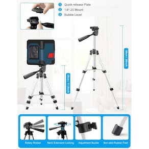- ? Tripé útil ? O tripé está equipado com uma alça conveniente, permite que você gire o nível do laser a 360 graus, projete linhas em qualquer posição ou ângulo ou ajuste a altura do tripé. O tripé pode ser estendido até 66 cm para ajudar você a ajustar a posição do laser para máxima precisão.