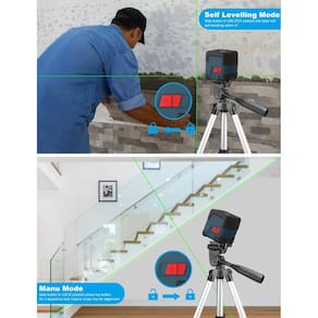 - ? Modos duplos e autonivelamento ? O laser de linha cruzada com interruptor deslizante permite que você defina 2 modos, modo autonivelante e modo manual. Ao trabalhar no modo autonivelante, a faixa de nivelamento e compensação é de 4° ± 1° e o nível do laser será automaticamente nivelado para linha horizontal/vertical/cruzada, caso contrário, o laser piscará para indicar a condição fora de nível. No modo manual, a função de autonivelamento é desativada e a cruz é bloqueada para usar o dispositivo em qualquer ângulo.