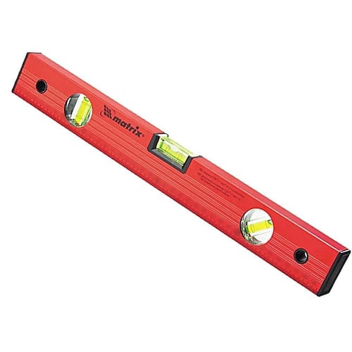 Nivel feito de perfil duro de alumínio. Tem três bolhas acrílicas para verificar desvios verticais e horizontais e também bolha regulada para verificar outros ângulos. Base fresada tem forma especial para medição conveniente de tubos nos trabalhos de canalização. Precisão de medição é 1 mm 0,057 graus .Régua graduada