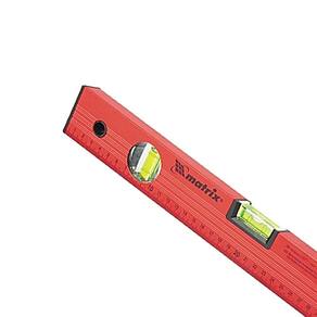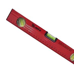 Nivel feito de perfil duro de alumínio. Tem três bolhas acrílicas para verificar desvios verticais e horizontais e também bolha regulada para verificar outros ângulos. Base fresada tem forma especial para medição conveniente de tubos nos trabalhos de canalização. Precisão de medição é 1 mm 0,057 graus .Régua graduada