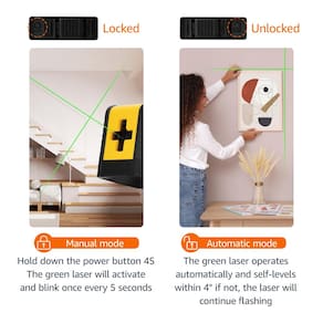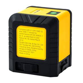Amazon Basics Nível laser Classe II horizontal/vertical e cruzado, 1,5 m, amarelo/preto - O nível de laser cria um auxílio visual para uma precisão ideal ao colocar azulejos, pendurar fotos, instalar janelas e muito mais - Inclui um nível de laser horizontal, vertical e de linha cruzada com um laser verde de 18 m para uso interno ou externo - Desbloqueie o pêndulo para modo automático; mude para o modo manual para escolher o ângulo desejado de acordo com necessidades específicas - Feito de plástico durável e metal com um exterior de borracha macia para resistência e uma aderência confortável - Funciona com pilha AA (pilhas não incluídas) - Dimensões do produto: 7 C x 6 L x 8 cm A