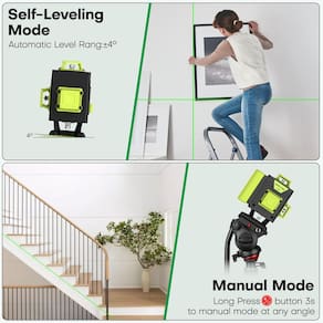- ?Layout completo de nível de laser 4 x 360°?A ferramenta autonivelante de nível a laser 360 com planos horizontais de 2 x 360° e vertical de 2 x 360° permite que os usuários cubram o chão, a parede, o teto em toda a sala e as linhas horizontais e verticais se cruzam em um ângulo de 90° para ajudar você a completar o layout quadrado, escolha facilmente ligar/desligar qualquer linha de laser. será um assistente ideal ferramenta para projetos de decoração de interiores.