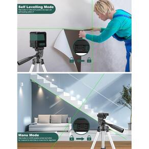 - Feixe de laser verde brilhante: o nível do laser tem um laser verde de linha cruzada brilhante que é facilmente projetado em um amplo ângulo de 110°, o que pode auxiliar no trabalho de nivelamento.