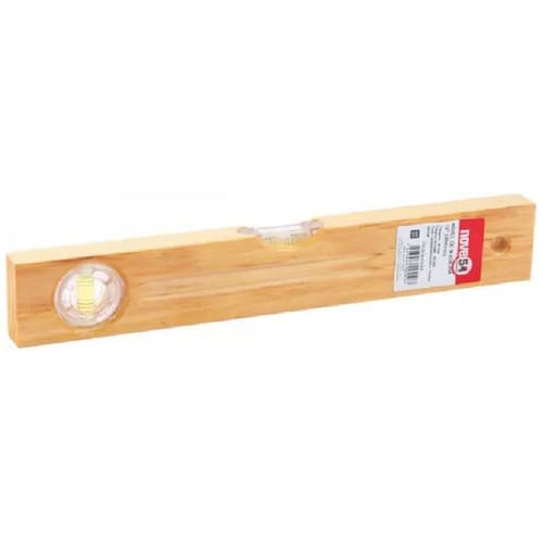 Possui corpo em madeira com 2 bolhas, sendo uma para nivelamento vertical e uma para nivelamento horizontal, facilitando o alinhamento de superfícies