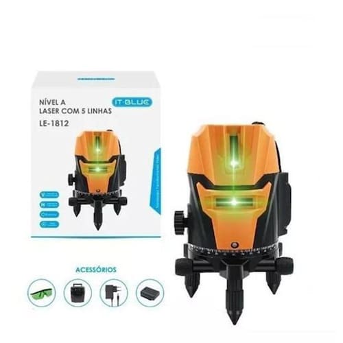 Nivel Laser Profissional 5 Linha Base Giratória It-blue Um instrumento indispensável para qualquer tipo de trabalho de precisão. Use-o em sua casa para instalar móveis ou em seu espaço de trabalho para tarefas mais complexas e obter resultados de precisão máxima. Este nível laser it blue projeta linhas na superfície que serão úteis para aplicações comuns de nivelamento e alinhamento como colocação de fotos, pisos, carpintaria, entre outros.