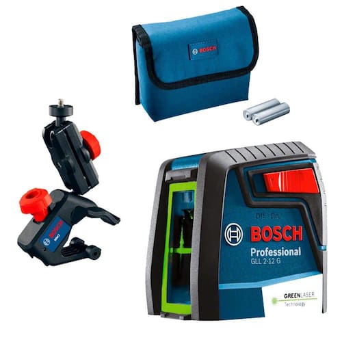 O Nível a Laser Bosch GLL 2-12 G é o nível ideal até em locais com muita luz, laser verde 4X mais visível, instalações e marcações muito mais rápidas e sem ajudante isto graças as seguintes características, Suporte multiarticulado, Trava de pêndulo, AutoNívelamento, Entrada com rosca 1/4'', Nivelamento horizontal: elimina a inclinação de uma superfície ao fazer sua instalação, Nivelamento vertical: permite instalações perfeitamente aprumadas nas paredes além do esquadro que é um cruzamento com ângulos de 90º exatos das linhas laser projetadas na parede como guia para instalação, eliminando a necessidade de riscar paredes.