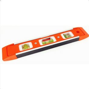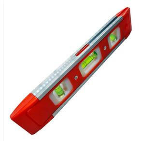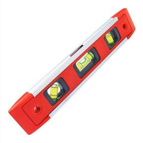 Nível com 3 bolhas, horizontal, vertical e 45º, com base magnética e aderência em superfícies de metal. Tamanho: 9'' 230 mm com espessura de 15 mm e largura de 40 mmFabricado em material de liga de alumínio, ímã e plástico.Ideal para locais de difícil acesso, perfeito para instalações de janelas, prateleiras, pias, molduras de quadros e mesa de bilhar, etc.