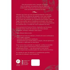 No caminho do amor de nção é um devocionário único que traz quarenta dias de inspiração. Um complemento perfeito para o clássico Amor de nção, conduzindo o leitor por uma jornada emocionante rumo aos braços protetores de Deus. Sabemos que Deus nos ama incondicionalmente. Então por que é tão difícil nos libertar do passado e viver essa verdade? Inspirado no livro bíblico de Oseias, Amor de nção fala de um amor tão profundo que transforma para sempre a vida de Angel, uma mulher que se considerava arruinada, sem chance de salvação. Este livro vai permitir que você vivencie diariamente, por quarenta dias, a verdade do amor inabalável de Deus.O livro contém textos pessoais de Francine Rivers, inspirados nas Escrituras, exploram temas-chave do romance, tais como rejeição, resignação, salvação, nção, entre outros.Cada reflexão diária inclui:Um trecho de Amor de nção, a história transformadora de amor entre Angel e Michael;Versículos da Bíblia para meditação;Apontamentos para estudo bíblico e oração, a fim de aprimorar a reflexão e a aplicação na vida diária.Quer você se sinta oprimido ou magoado, confuso ou perdido — ou apenas queira experimentar mais profundamente a infinita graça divina —, este devocionário é um convite a uma compreensão transformadora do amor ntor de Deus.O modo como Francine Rivers aborda os temas conduz à reflexão e faz com que o leitor consiga, de um jeito mais leve, trazer todas essas experiências para sua vida cotidiana e também colocar os exemplos e ensinamentos em prática.Muitas vezes as pessoas precisam desses exemplos para que consigam acertar seu rumo e seguir em frente. Neste caso, o instrumento de reflexão vem em forma de um devocionário, pensado e elaborado para tornar essa experiência mais produtiva e prazerosa.No caminho do amor de nção é o complemento perfeito para Amor de nção e seus muitos fãs.
