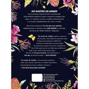 Um romance imprevisível e emocionante. Em No rastro de Amber, Christine Leunens apresenta uma história poderosa sobre a natureza complexa do amor, política internacional e noções fundamentais de certo e errado.           Ethan Grieg é um estudante de cinema e está apaixonado por sua melhor amiga, Amber Deering, uma ativista ambiental que vive na fazenda de sua família aparentemente perfeita. Amber ama Ethan, mas não do jeito que ele deseja. Em vez disso, ela entrega seu coração para o viúvo Stuart Reeds, um charmoso e refinado investidor britânico quase duas gerações mais velho. Veterano da Guerra da Coreia, Stuart está mentalmente preparado para a longa e indireta guerra entre ele e seu jovem rival pelo coração de Amber.    Sempre um passo atrás de Stuart, Ethan viaja da França à Antártida na tentativa de seguir em frente e abandonar o passado. Mas, apesar de seus esforços, parece haver um magnetismo entre ele e Amber que constantemente os traz de volta para a vida um do outro, mantendo o amor de Ethan vivo.    Quando segredos familiares começam a ser expostos e nada é o que parece ser, cada um se vê obrigado a cometer atos impensáveis.    Ambientado na Nova Zelândia durante a tumultuosa e em constante transição década de 1980 — a era do movimento antinuclear, dos protestos do Springbok rugby tour e do bombardeio do navio Rainbow Warrior —, No rastro de Amber é um romance poderoso e passional que mostra quão longe alguém pode ir pelas pessoas que ama.         “No rastro de Amber explora a natureza alvoroçada e abrasadora do primeiro amor. O tipo que permanece indelével e continua assombrando depois do momento em que deveria ter chegado ao fim. O tipo que nos faz acreditar que poderia ter dado certo, sobrevivido, quem sabe… Para fãs de Pessoas normais, de Sally Rooney, e Um   dia, de David Nicholls.” — Kete Books      “No rastro de Amber é uma narrativa poderosa sobre amor, perda, obsessão e escolhas destrutivas, entremeada por marcos políticos sísmicos.” — The New Zealand Listener