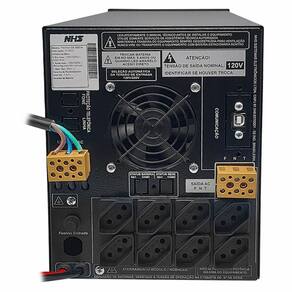 saída tensão nom. Saída: 120v 220v configurável através de jumper interno na placa tipo de seleção de saída: jumper interno fx. Tensão saída inversor: 120v +-5% 220v+-5% frequência de saída: 60hz +-0,1% forma-de-onda: semi-senoidal número de tomadas: 8 tomadas padrão nbr 14136 estágios de regulação: 4