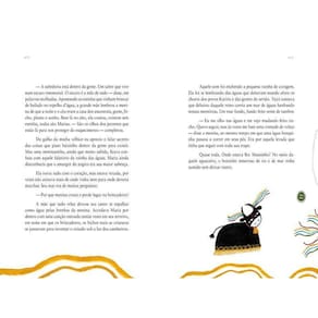 Quanto tempo dura um reinado? E a infância? Este livro nos apresenta a jornada de Maria, uma menina rainha que cresceu brincando reisado, folguedo que é uma mistura de teatro, brincadeira e festejo. Até que um dia, assim como manda a tradição desse brinquedo popular, ela precisa passar a coroa para uma menina mais nova. Não bastasse o desafio de viver esse rito de passagem e crescer, coisas estranhas acontecem no terreiro de Yayá, a avó de Maria, e ela é convocada a atravessar o sertão numa noite escura sem fim. No percurso, encontra personagens lendários e encantados como os Mateus, os palhaços do reisado, uma vaqueira mestra do aboio, as Caboclinhas da mata encantada, o pássaro Jaraguá e seu padrinho ferreiro Nego Zé. Permeada dos saberes da cultura brasileira, a narrativa tem estrutura de conto acumulativo, em que os mistérios vão se desvendando aos poucos, e novas companhias vão surgindo a cada curva da caminhada, como que para não nos deixar esquecer do dom de sonhar junto, e da perseverança e do entusiasmo necessários para trilhar o caminho. O texto tem também sua versão em dramaturgia, e foi escrito por Gabriela Romeu, que produziu o documentário Meninos e reis, e acompanha, em extensa pesquisa, o olhar da criança e sua participação no mundo, e pela dramaturga e compositora Antonia Mattos, diretora do grupo teatral Clã do Jabuti e idealizadora desse projeto. As ilustrações são da cearense Luci Sacoleira.