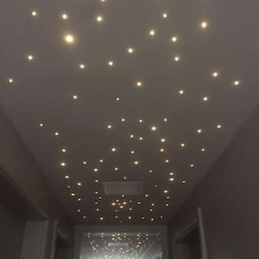 Kit 300 pontos misto com fibras de 0,50 mm e 0,75 mm super kit inovva Maior empresa especialista em noite estrelada® do brasil Veja foto do iluminador  e material enviado no kit Especializada em iluminação fibra óptica efeito estrelado Fotos reais de nosso produto instalado Fibras óticas super flexíveis e perfeita definição de pontos luz Equipamento iluminador  Qualidade inovva iluminação interiores® - tradição neste mercado. Qual o diferencial deste kit As fibras de diferentes calibres fornecidos neste kit simularão algumas estrelas maiores e menores, lindo efeito estrelado mais real Especificações técnicas: Marca: noite estrelada® / inovva iluminação interiores® Quantidade: 300 pontos de luz - estrelas Cor: branca quente Potencia:5w - novo CHIP CREE LED Iluminador super led Voltagem: bivolt Dimensões aproximadas do equipamento  lxaxc : 7 x 6 x 8 cm O que você receberá em nosso super kit: Conteúdo da embalagem: 01 equipamento iluminador compacto em alumínio com plug tomada ac, 01 conjunto com cabos de fibra ótica com fibras de ø de 0,50 mm e 0,75 mm 80 cabos de 1m / 220 cabos de 2m 10 terminais estrelinha 01 broca de 0.8 mm, 01 tubo de cola, 01 manual de instalação completo 01 certificado de do fabricante. : 1 ano no equipamento e 12 anos no cabeamento Este produto é indicado para uma área de 5,0m a 6,0m quadrados Características técnicas gerais do super kit inovva: Características da linha  de iluminadores inovva: Fonte de luz led com filtro interno para melhor contraste de cor, resultando em uma perfeita nitidez da cor, equipamento totalmente confeccionado em alumínio e tomada de alimentação com plug ac proporcionando uma melhor segurança e proteção de sua instalação. Possui encaixe perfeito para receber o conjunto de fibras óticas, potencia de 5w e funcionamento bivolt, pode ser ligado tanto na energia 127v como na energia 220v. Brocas: Broca é produzida em aço rápido, isso permite fácil perfuração de perfis encontrados no próprio teto. Fibras óticas: Fibras ópticas totalmente flexíveis com núcleo interno em polímero ultra hd para perfeita definição dos pontos de luz  estrelas . Aplicação: Muito utilizadas na arquitetura e paisagismo como iluminação decorativa, deve ser aplicado em forros e painéis de gesso/madeira ou qualquer outra superfície de fácil furação. Indicado para quarto de bebê, criança ou casal, salas de banho, salas de tv, home theater, hall de entrada, cinema, brinquedoteca, berçário, spa, clínica de estética, hotel, etc. Para a instalação é necessária um ponto de energia comandado por e um vão livre de pelo menos 12 cm, por trás da superfície que deve estar com pintura/acabamento final pronto para facilitar a instalação. Preço e qualidade garantida pela empresa inovva iluminação interiores®, kits para efeito estrelado com fibra optica , tradição e experiência neste mercado. Inovva iluminação interiores® e noite estrelada® são marcas registadas no inpi, a cópia de qualquer imagem de produto ou ambientação exclusiva de propriedade da inovva será denunciada através dos canais de proteção à propriedade intelectual. Desta forma asseguramos e aumentamos a segurança do consumidor de estar adquirindo um produto com a originalidade e qualidade prestada pela nossa empresa. Inovva iluminação interiores® e noite estrelada® são marcas registadas no inpi, a cópia de qualquer imagem de produto ou ambientação exclusiva de propriedade da inovva será denunciada através dos canais de proteção à propriedade intelectual. Desta forma asseguramos e aumentamos a segurança do consumidor de estar adquirindo um produto com a originalidade e qualidade prestada pela nossa empresa.