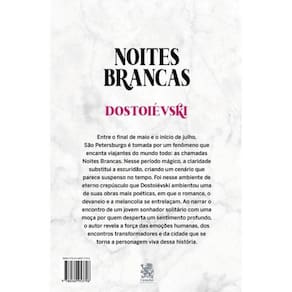Em Noites Brancas, Fiódor Dostoiévski apresenta uma narrativa breve e delicada, marcada por lirismo e profunda sensibilidade. Ambientada em São Petersburgo durante as célebres noites em que o sol quase não se põe, a obra convida o leitor a mergulhar em reflexões sobre a solidão, os sonhos e a intensidade dos sentimentos humanos. Com sua escrita envolvente e poética, Dostoiévski revela um lado mais intimista de sua genialidade literária, oferecendo ao público uma história atemporal que permanece emocionante e atual. Uma leitura essencial para admiradores de clássicos e para todos aqueles que buscam a beleza da literatura em sua forma mais pura. Marca: Não Informado