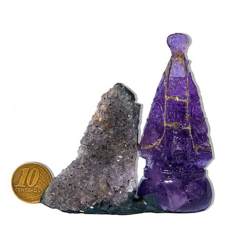 Capelinha de Ametista com Nossa Senhora Aparecida 8 cm – Geodo Natural Classe A | Cristal de Fé e Proteção Espiritual Peça devocional e energética feita com cristal de Ametista Extra e imagem de Nossa Senhora Aparecida.Ideal para altares, orações e decoração espiritual. Descrição do Produto Transforme o seu ambiente com a força da fé e a beleza natural da Capelinha de Ametista com Nossa Senhora Aparecida.Essa peça única une a espiritualidade da padroeira do Brasil com a energia purificadora dos cristais lilás de Ametista, em um autêntico geodo bruto de garimpo. A imagem religiosa está delicadamente inserida na cavidade da pedra, criando um santuário natural que emana paz, proteção e conexão espiritual. Características da Peça