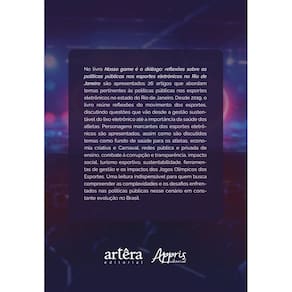 No livro Nosso game é o diálogo: re?exões sobre as políticas públicas nos esportes eletrônicos no Rio de Janeiro são apresentados 26 artigos que abordam temas pertinentes às políticas públicas nos esportes eletrônicos no estado do Rio de Janeiro. Desde 2019, o livro reúne re?exões do movimento dos esportes, discutindo questões que vão desde a gestão sustentável do lixo eletrônico até a importância da saúde dos atletas. Personagens marcantes dos esportes eletrônicos são apresentados, assim como são discutidos temas como fundo de saúde para os atletas, economia criativa e Carnaval, redes pública e privada de ensino, combate à corrupção e transparência, impacto social, turismo esportivo, sustentabilidade, ferramentas de gestão e os impactos dos Jogos Olímpicos dos Esportes. Uma leitura indispensável para quem busca compreender as complexidades e os desa?os enfrentados nas políticas públicas nesse cenário em constante evolução no Brasil.